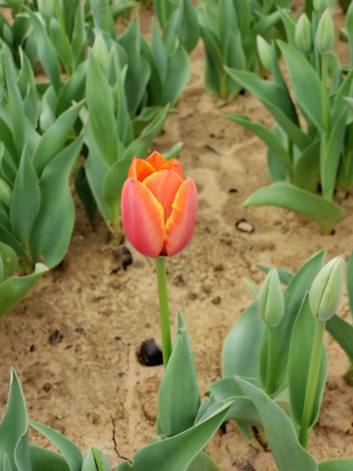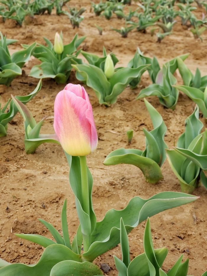 With the first signs of spring slowly sprouting in the southern states, back in February, my husband and I took an opportunity to head out to the Texas-Tulips farm in Pilot Point, which is not far from where we live. We went on the first opening day of the season, which happened to be a very breezy weekday, so there weren’t a lot of people there. The nice thing about that was we didn’t have to worry about too many people posing for photos among the blooms while we attempted to take our own pictures. The downside on going so early in the season was that we’d had more rain than sun over the previous month, and there were rows and rows of bulbs that had not yet bloomed. Luckily, there was still a good variety for us to enjoy.